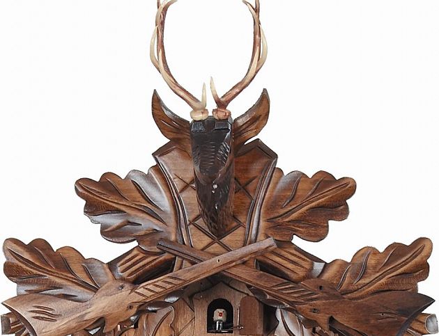 NAZAJ NA KATEGORIJOStilska lesena ura s kukavico in čudovito izrezljanim lovskim motivom.